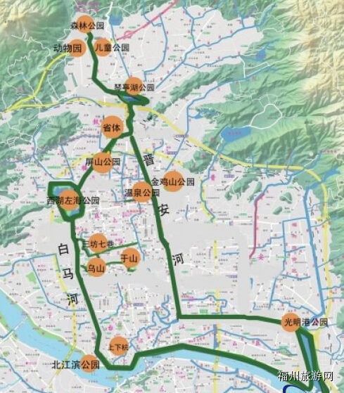 已建成全国城市内最长的滨河休闲道,“光明港-森林公园”绿道,单向全长约25公里。“晋安河-北江滨公园”绿道单向全长约12公里。不!差!钱!