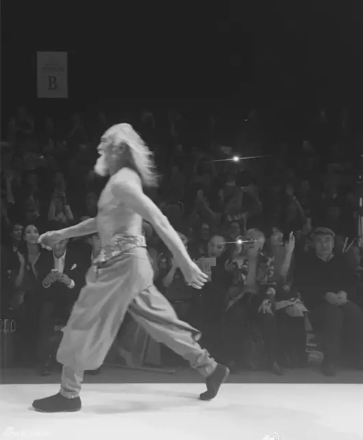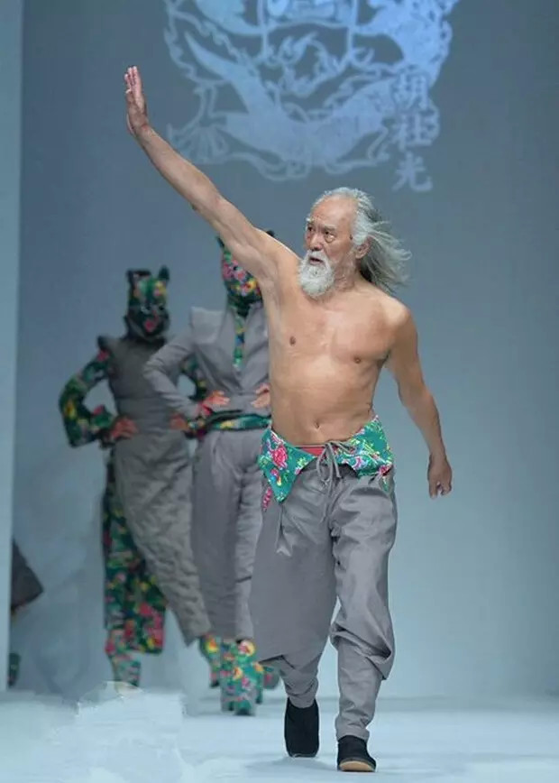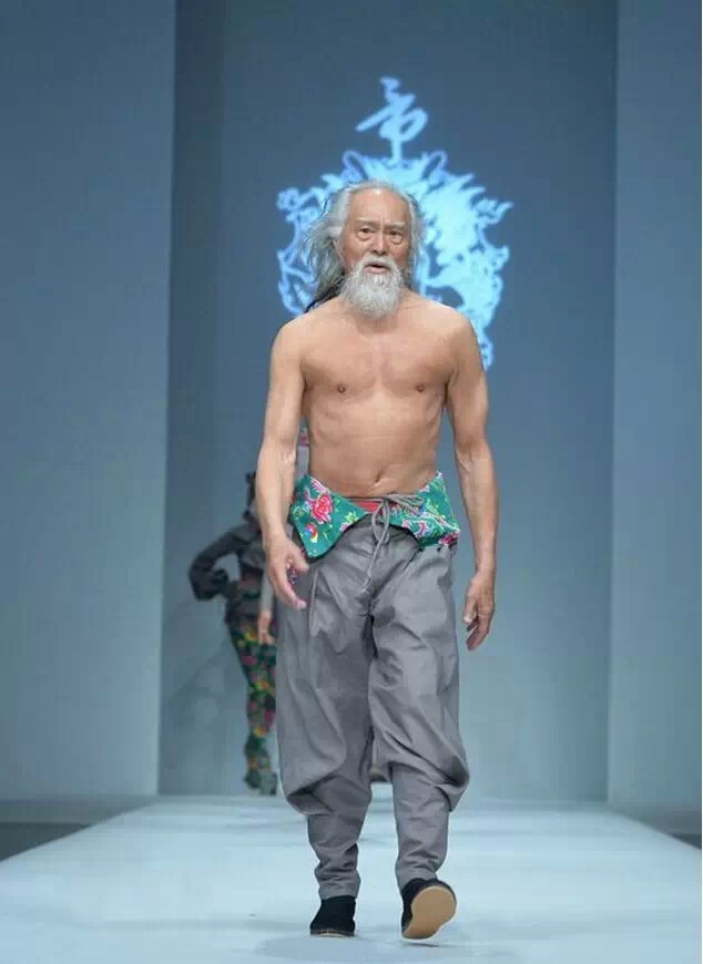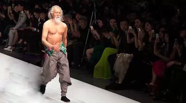 当天,在《重返20岁》中扮演李大海的王德顺老爷子赤裸上身,穿着大棉裤和千层底黑布鞋登上T台,瞬间吸引所有人的目光。老爷子虽然年事已高,但是体型不走样,走起路来精神焕发,豪爽霸气。