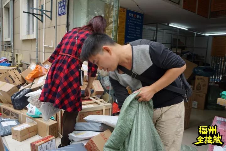 忘了身后忙碌的快递员